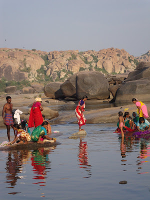 Danach reisten wir weiter nach Hampi, eine alte Tempel Stadt in einer wunderschoenen steinigen Landschaft.