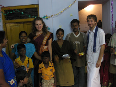 Ohne Weihnachtsguetzli, Weihnachtsmusik, Weihnachtsessen mit der Familie, Weihnachtskälte aber im Sari, mit Weihnachtsgeschenken, Teeparty mit indischen Freunden und in der Wärme feierten wir dieses Jahr eine etwas andere Weihnachten.Der Weihnachtstag begann mit einem indischen Brunch. Nachdem wir uns in Schale geworfen haben (Sari und Dothi) versammelten wir uns mit den anderen Volunteers auf dem Balkon um das Weihnachtsbäumchen (importiertes Geschenk aus Amerika).