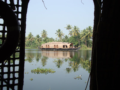 Als wir ODAM verliessen erlebten wir fast den groesseren Kulturschock als damals als wir nach Indien kamen. Nach dem Dorfleben in Tiruchuli mussten wir uns erst mal an touristische Preise, westliche Outfits und Schwizerduetsch das nicht aus unseren Mäulern "floss" gewöhnen. Weiter reisten wir nach Kolam und dann nach Alleppey wo wir 2 Nächte auf einem Hausboot verbrachten, welches durch die Backwaters schwebte. (Die Backwaters sind Kanaele uns Fluesse nur durch einen Damm vom Meer getrennt) wir hatten ein Boot für uns mit Kapitän und Koch. Die Landschaft war bezaubernd und das Essen vorzüglich.