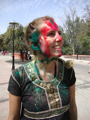 Da wir an Holi reisen mussten, verpassten wir die grosse Farbschlacht und es hat uns in Agra nur sanft erwischt. Zum Glueck - wir sahen Tage danach immer noch Leute, bei denen die Farbe nicht aus ging.